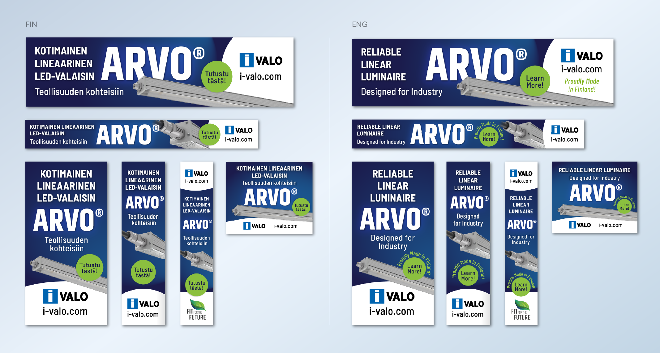 I-Valo on teollisuusvalaisimia valmistava kotimainen yritys, joka on ollut toiminnassa yli 50-vuoden ajan. Brändin vahvuus on valaisinten luotettavuus/laatu teollisuuden vaativissa olosuhteissa. Tässä mainoskampanjassa bannerit on kohdennettu yrityksille, jotka ovat jo käyneet yrityksen nettisivulla ja ovat jo lähtökohtaisesti valmiiksi kiinnostuneita I-Valon tuotteista.